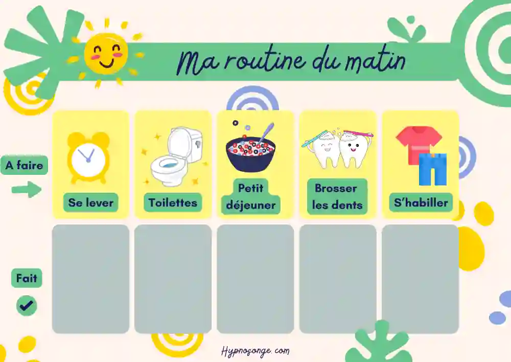 1 affiche « Ma routine du matin » + 1 affiche vierge afin de pouvoir la personnaliser à votre quotidien,