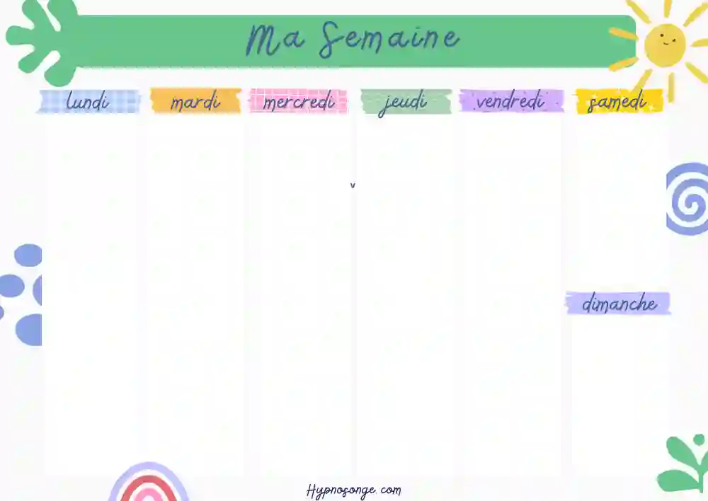 Pour le semainier, découpez les pictogrammes « semainier » nécessaires et placez-les sur l’affiche « Ma semaine » grâce aux scratchs autocollants. Votre enfant pourra les ajuster et les déplacer au fil de l’avancement de la semaine.