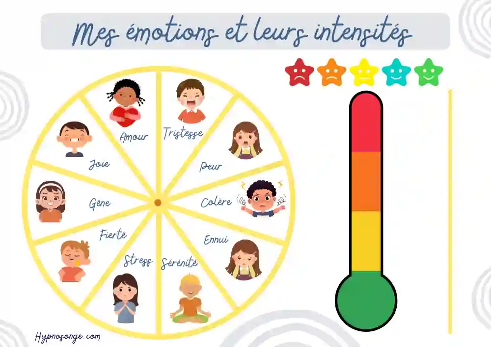 Pour utiliser la roue des émotions et le thermomètre de l’intensité, il suffit de suivre la même procédure que pour le calendrier perpétuel.